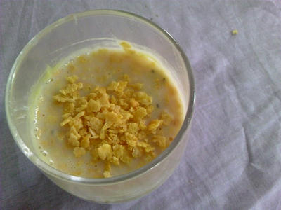150mlの牛乳と水(割合はお好みで)をゆっくりとかき混ぜ、フレークを入れて飲むのがスタンダード。